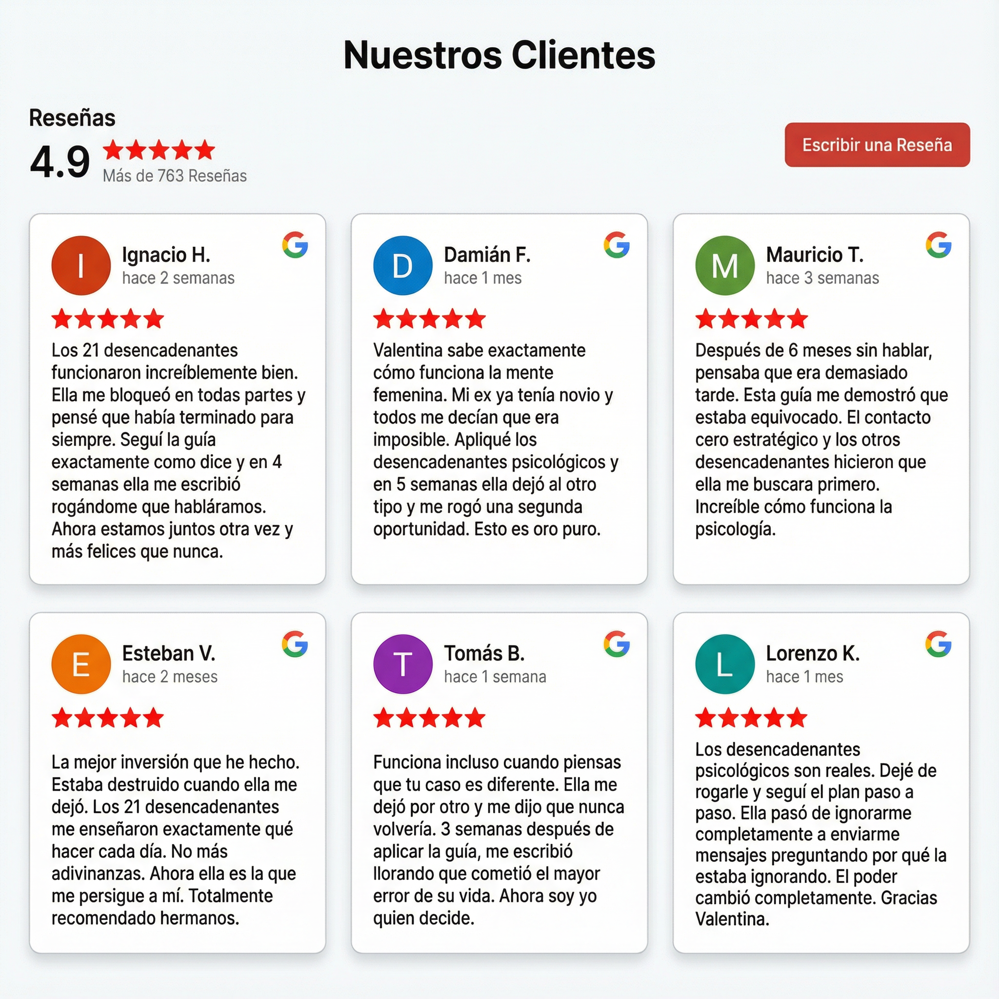 Las estrategias de mi Guía de 21 desencadenantes psicológicos están transformando a los «ex olvidados» en hombres en los que sus mujeres no pueden dejar de pensar. ¿Y lo mejor de todo? Todo se basa en la psicología femenina que la mayoría de los «expertos» masculinos nunca entenderán.